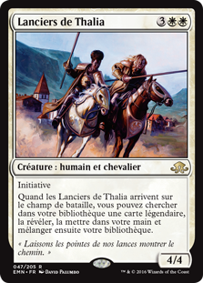 | Rules | First strike When Thalia's Lancers enters the battlefield, you may search your library for a legendary card, reveal it, put it into your hand, then shuffle. |