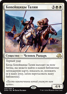 | Rules | First strike When Thalia's Lancers enters the battlefield, you may search your library for a legendary card, reveal it, put it into your hand, then shuffle. |