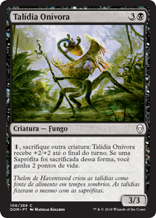 | Rules | , Sacrifice another creature: Thallid Omnivore gets +2/+2 until end of turn. If a Saproling was sacrificed this way, you gain 2 life. |