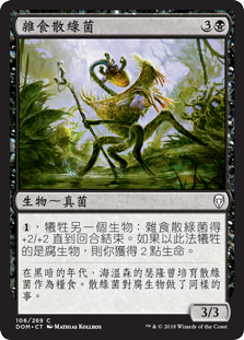 | Rules | , Sacrifice another creature: Thallid Omnivore gets +2/+2 until end of turn. If a Saproling was sacrificed this way, you gain 2 life. |