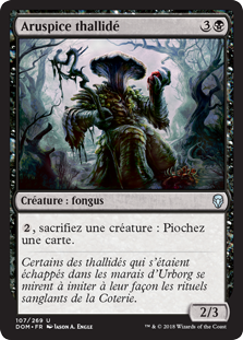 | Flavor | Some of the thallids that escaped into the fens of Urborg began emulating the Cabal's bloodsoaked rituals in their own peculiar way. |