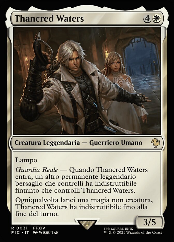 | Rules | Flash Royal Guard — When Thancred Waters enters, another target legendary permanent you control gains indestructible for as long as you control Thancred Waters. Whenever you cast a noncreature spell, Thancred Waters gains indestructible until end of turn. |