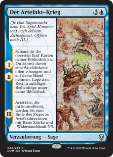 | Rules | (As this Saga enters and after your draw step, add a lore counter. Sacrifice after III.) I, II — Look at the top five cards of your library. You may reveal an artifact card from among them and put it into your hand. Put the rest on the bottom of your library in a random order. III — Artifacts you control become artifact creatures with base power and toughness 5/5 until end of turn. |
