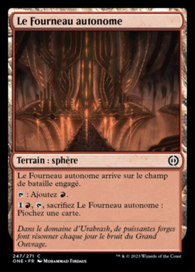 | Rules | The Autonomous Furnace enters the battlefield tapped. : Add . , , Sacrifice The Autonomous Furnace: Draw a card. |