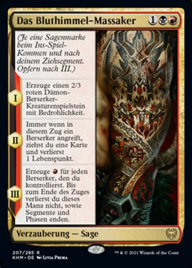 | Rules | (As this Saga enters and after your draw step, add a lore counter. Sacrifice after III.) I — Create a 2/3 red Demon Berserker creature token with menace. II — Whenever a Berserker attacks this turn, you draw a card and you lose 1 life. III — Add for each Berserker you control. Until end of turn, you don't lose this mana as steps and phases end. |