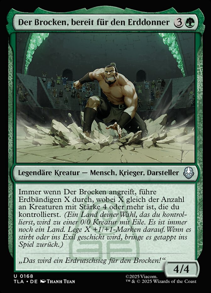 | Rules | Whenever The Boulder attacks, earthbend X, where X is the number of creatures you control with power 4 or greater. (Target land you control becomes a 0/0 creature with haste that's still a land. Put X +1/+1 counters on it. When it dies or is exiled, return it to the battlefield tapped.) |