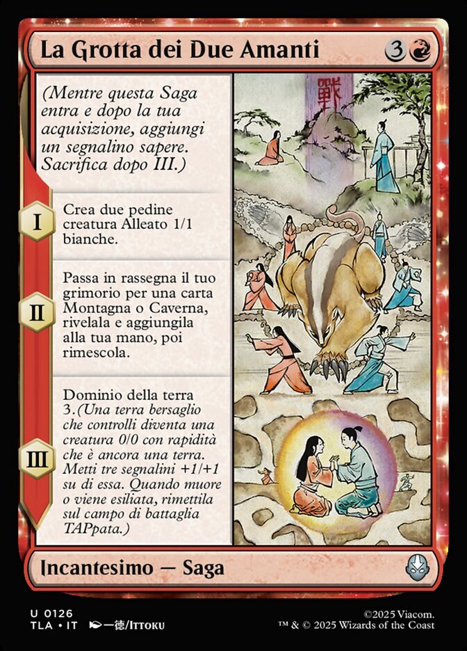 | Rules | (As this Saga enters and after your draw step, add a lore counter. Sacrifice after III.) I — Create two 1/1 white Ally creature tokens. II — Search your library for a Mountain or Cave card, reveal it, put it into your hand, then shuffle. III — Earthbend 3. (Target land you control becomes a 0/0 creature with haste that's still a land. Put three +1/+1 counters on it. When it dies or is exiled, return it to the battlefield tapped.) |