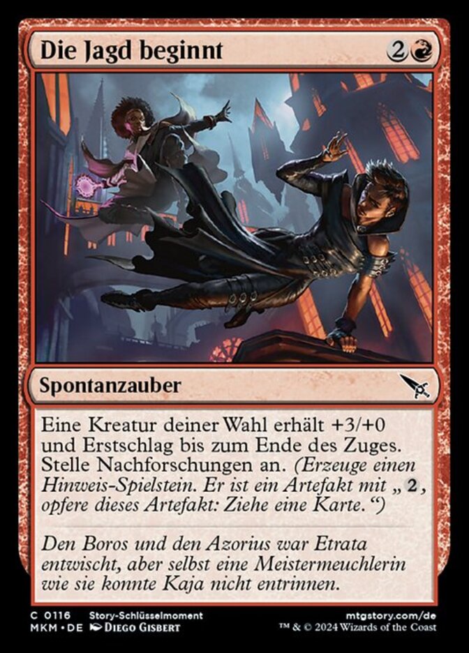 | Rules | Target creature gets +3/+0 and gains first strike until end of turn. Investigate. (Create a Clue token. It's an artifact with ", Sacrifice this artifact: Draw a card.") |