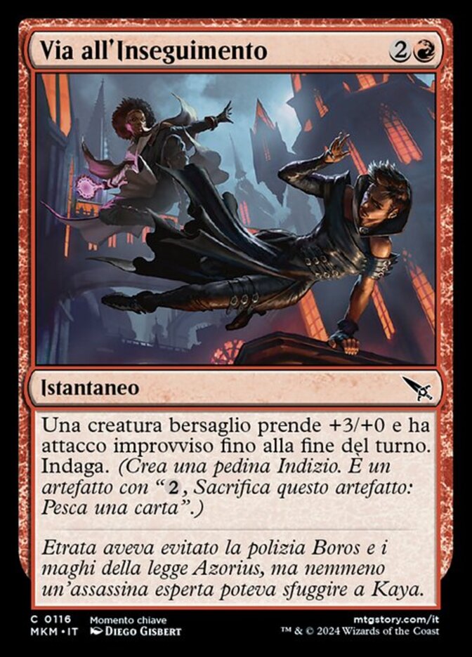 | Rules | Target creature gets +3/+0 and gains first strike until end of turn. Investigate. (Create a Clue token. It's an artifact with ", Sacrifice this artifact: Draw a card.") |