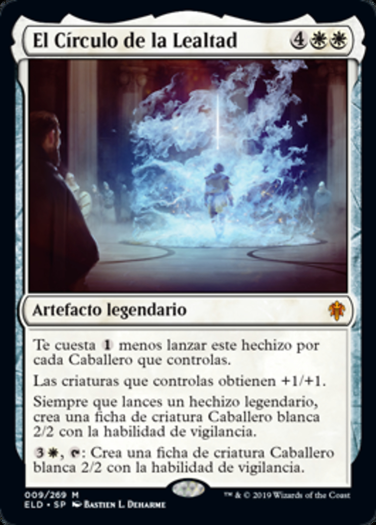 | Rules | This spell costs less to cast for each Knight you control. Creatures you control get +1/+1. Whenever you cast a legendary spell, create a 2/2 white Knight creature token with vigilance. , : Create a 2/2 white Knight creature token with vigilance. |