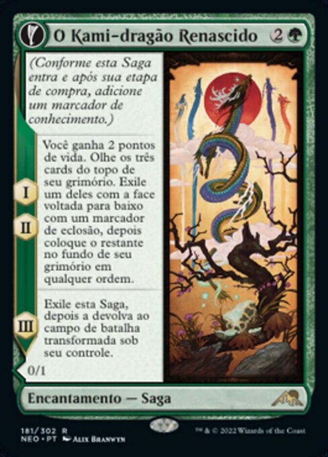 | Rules | (As this Saga enters and after your draw step, add a lore counter.) I, II — You gain 2 life. Look at the top three cards of your library. Exile one of them face down with a hatching counter on it, then put the rest on the bottom of your library in any order. III — Exile this Saga, then return it to the battlefield transformed under your control. // Whenever Dragon-Kami's Egg or a Dragon you control dies, you may cast a creature spell from among cards you own in exile with hatching counters on them without paying its mana cost. |