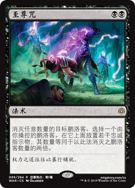 | Rules | Destroy any number of target planeswalkers. Choose a planeswalker you control. Put two loyalty counters on it for each planeswalker destroyed this way. |