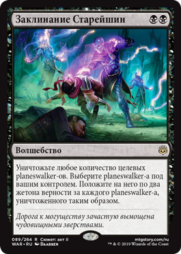 | Rules | Destroy any number of target planeswalkers. Choose a planeswalker you control. Put two loyalty counters on it for each planeswalker destroyed this way. |