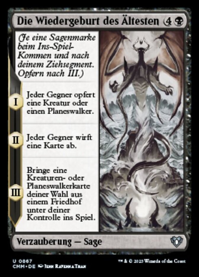 | Rules | (As this Saga enters and after your draw step, add a lore counter. Sacrifice after III.) I — Each opponent sacrifices a creature or planeswalker. II — Each opponent discards a card. III — Put target creature or planeswalker card from a graveyard onto the battlefield under your control. |