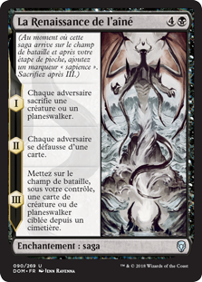 | Rules | (As this Saga enters and after your draw step, add a lore counter. Sacrifice after III.) I — Each opponent sacrifices a creature or planeswalker. II — Each opponent discards a card. III — Put target creature or planeswalker card from a graveyard onto the battlefield under your control. |