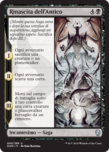 | Rules | (As this Saga enters and after your draw step, add a lore counter. Sacrifice after III.) I — Each opponent sacrifices a creature or planeswalker. II — Each opponent discards a card. III — Put target creature or planeswalker card from a graveyard onto the battlefield under your control. |