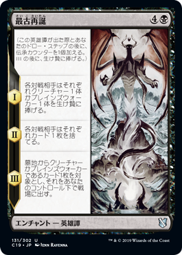 | Rules | (As this Saga enters and after your draw step, add a lore counter. Sacrifice after III.) I — Each opponent sacrifices a creature or planeswalker. II — Each opponent discards a card. III — Put target creature or planeswalker card from a graveyard onto the battlefield under your control. |
