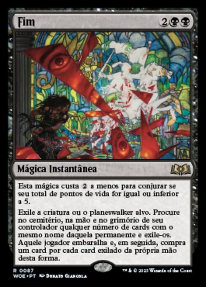| Rules | This spell costs less to cast if your life total is 5 or less. Exile target creature or planeswalker. Search its controller's graveyard, hand, and library for any number of cards with the same name as that permanent and exile them. That player shuffles, then draws a card for each card exiled from their hand this way. |