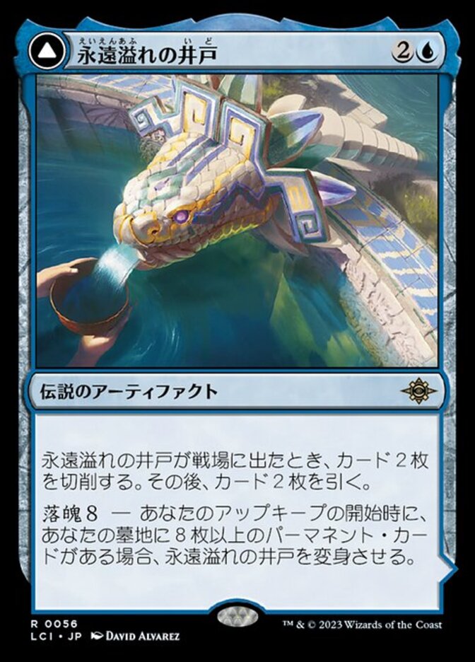 | Rules | When The Everflowing Well enters the battlefield, mill two cards, then draw two cards. Descend 8 — At the beginning of your upkeep, if there are eight or more permanent cards in your graveyard, transform The Everflowing Well. // (Transforms from The Everflowing Well.) : Add . Whenever you cast a permanent spell using mana produced by The Myriad Pools, up to one other target permanent you control becomes a copy of that spell until end of turn. |