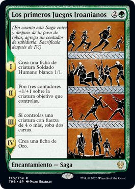 | Rules | (As this Saga enters and after your draw step, add a lore counter. Sacrifice after IV.) I — Create a 1/1 white Human Soldier creature token. II — Put three +1/+1 counters on target creature you control. III — If you control a creature with power 4 or greater, draw two cards. IV — Create a Gold token. (It's an artifact with "Sacrifice this artifact: Add one mana of any color.") |