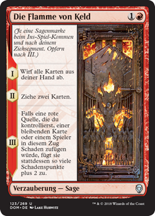 | Rules | (As this Saga enters and after your draw step, add a lore counter. Sacrifice after III.) I — Discard your hand. II — Draw two cards. III — If a red source you control would deal damage to a permanent or player this turn, it deals that much damage plus 2 to that permanent or player instead. |