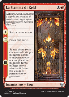 | Rules | (As this Saga enters and after your draw step, add a lore counter. Sacrifice after III.) I — Discard your hand. II — Draw two cards. III — If a red source you control would deal damage to a permanent or player this turn, it deals that much damage plus 2 to that permanent or player instead. |