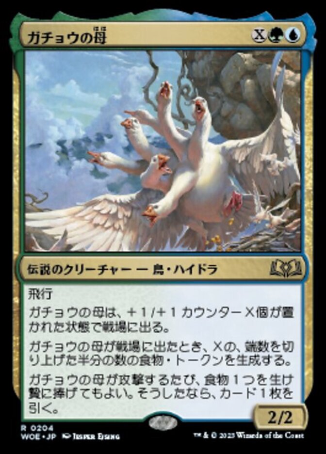 | Rules | Flying The Goose Mother enters the battlefield with X +1/+1 counters on it. When The Goose Mother enters the battlefield, create half X Food tokens, rounded up. Whenever The Goose Mother attacks, you may sacrifice a Food. If you do, draw a card. |