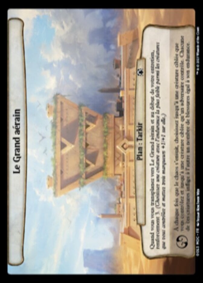 | Rules | When you planeswalk to The Great Aerie and at the beginning of your upkeep, bolster 3. (Choose a creature with the least toughness among creatures you control and put three +1/+1 counters on it.) Whenever chaos ensues, choose up to one target creature you control and up to one target creature an opponent controls. Each of those creatures deals damage equal to its toughness to the other. |