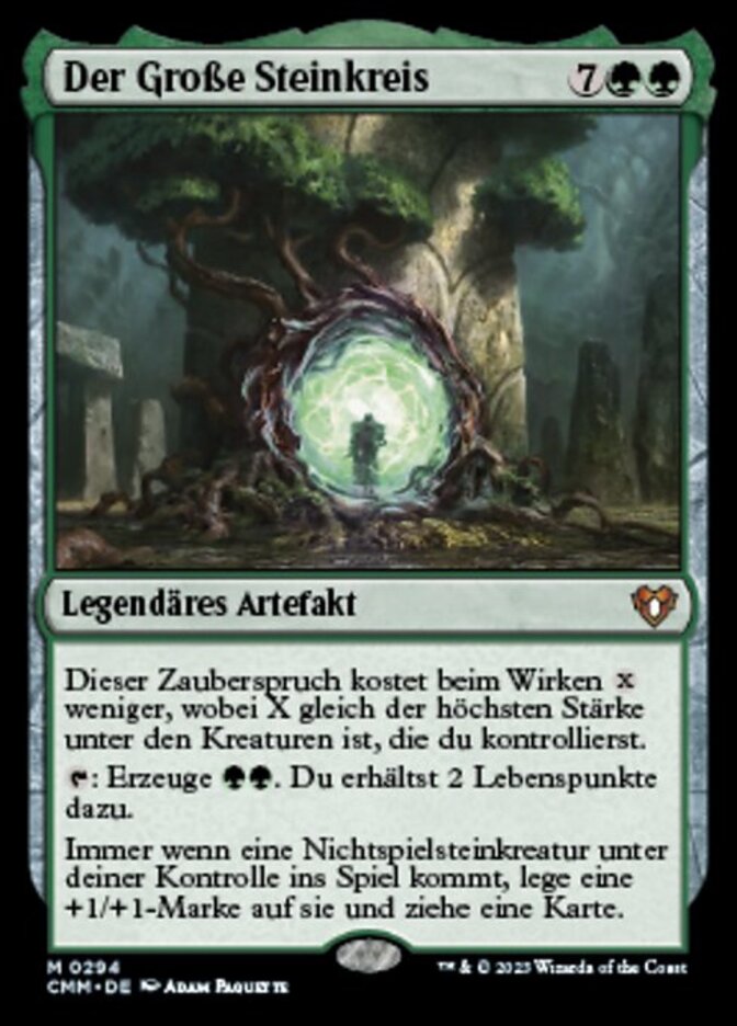 | Rules | This spell costs less to cast, where X is the greatest power among creatures you control. : Add . You gain 2 life. Whenever a nontoken creature enters the battlefield under your control, put a +1/+1 counter on it and draw a card. |
