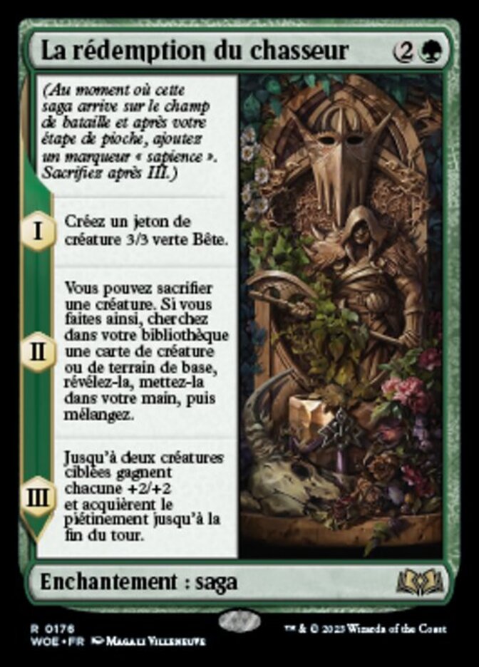 | Rules | (As this Saga enters and after your draw step, add a lore counter. Sacrifice after III.) I — Create a 3/3 green Beast creature token. II — You may sacrifice a creature. If you do, search your library for a creature or basic land card, reveal it, put it into your hand, then shuffle. III — Up to two target creatures each get +2/+2 and gain trample until end of turn. |