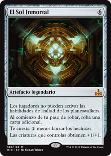 | Rules | Players can't activate planeswalkers' loyalty abilities. At the beginning of your draw step, draw an additional card. Spells you cast cost less to cast. Creatures you control get +1/+1. |