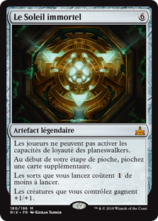 | Rules | Players can't activate planeswalkers' loyalty abilities. At the beginning of your draw step, draw an additional card. Spells you cast cost less to cast. Creatures you control get +1/+1. |
