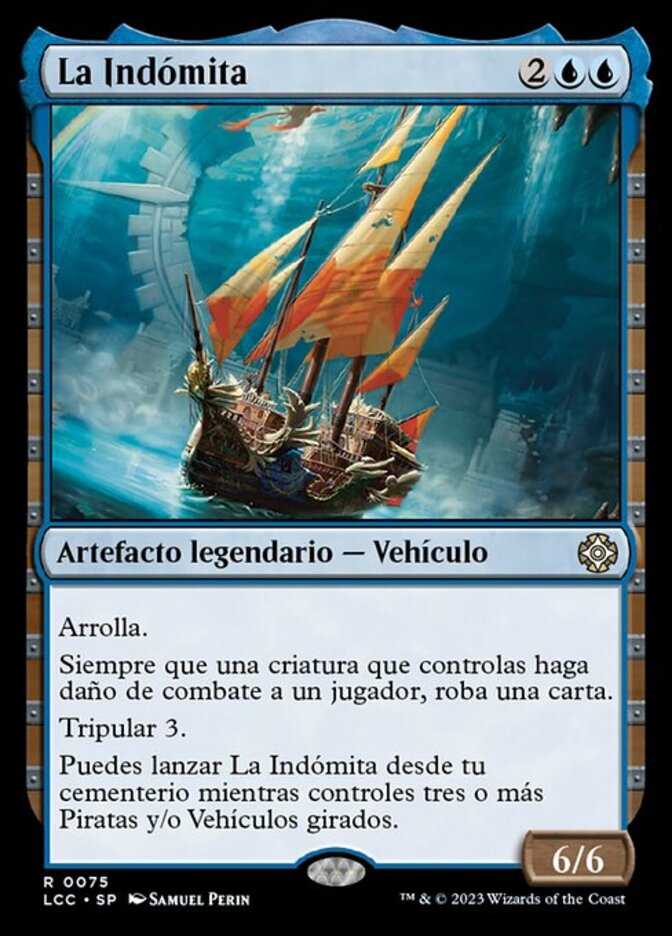 | Rules | Trample Whenever a creature you control deals combat damage to a player, draw a card. Crew 3 You may cast The Indomitable from your graveyard as long as you control three or more tapped Pirates and/or Vehicles. |