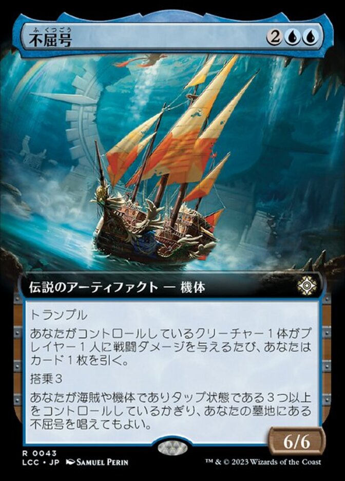 | Rules | Trample Whenever a creature you control deals combat damage to a player, draw a card. Crew 3 You may cast The Indomitable from your graveyard as long as you control three or more tapped Pirates and/or Vehicles. |