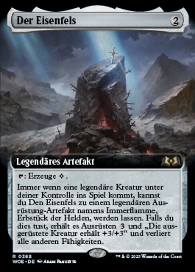 | Rules | : Add . Whenever a legendary creature enters the battlefield under your control, you may have The Irencrag become a legendary Equipment artifact named Everflame, Heroes' Legacy. If you do, it gains equip and "Equipped creature gets +3/+3" and loses all other abilities. |