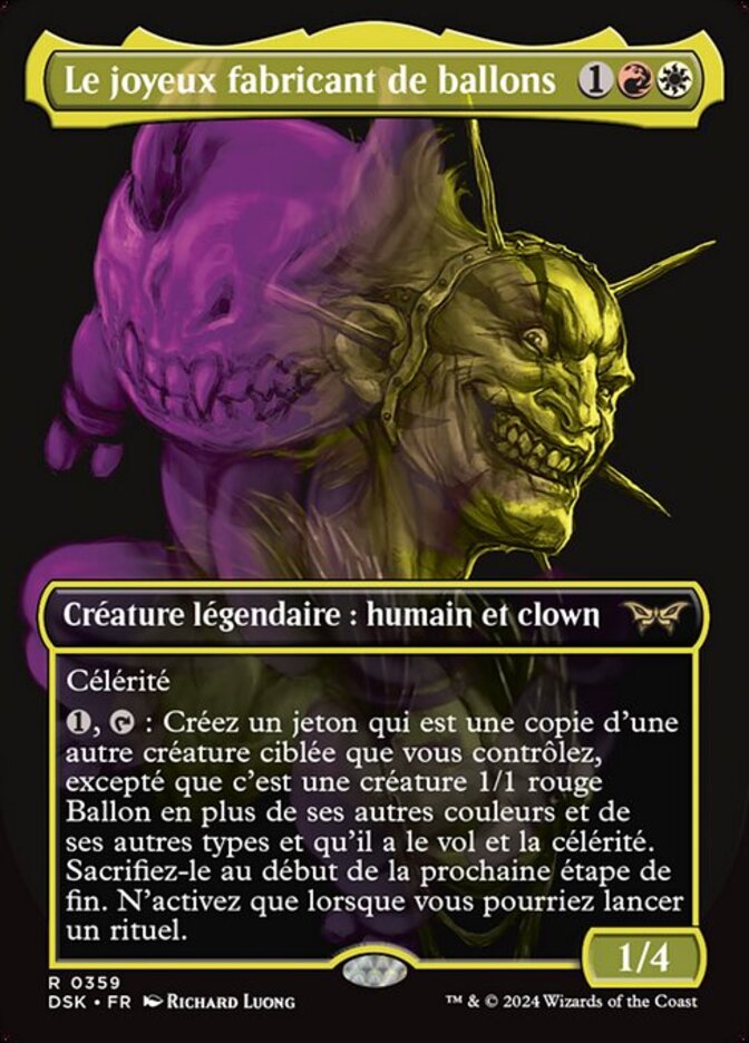 | Rules | Haste , : Create a token that's a copy of another target creature you control, except it's a 1/1 red Balloon creature in addition to its other colors and types and it has flying and haste. Sacrifice it at the beginning of the next end step. Activate only as a sorcery. |