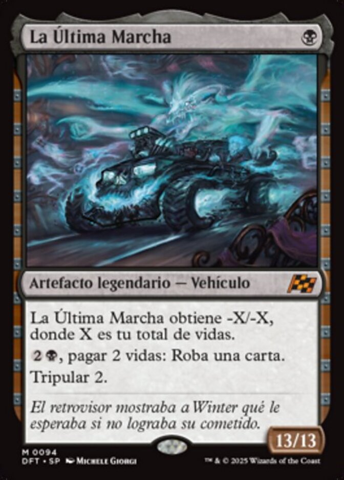 | Rules | The Last Ride gets -X/-X, where X is your life total. , Pay 2 life: Draw a card. Crew 2 |