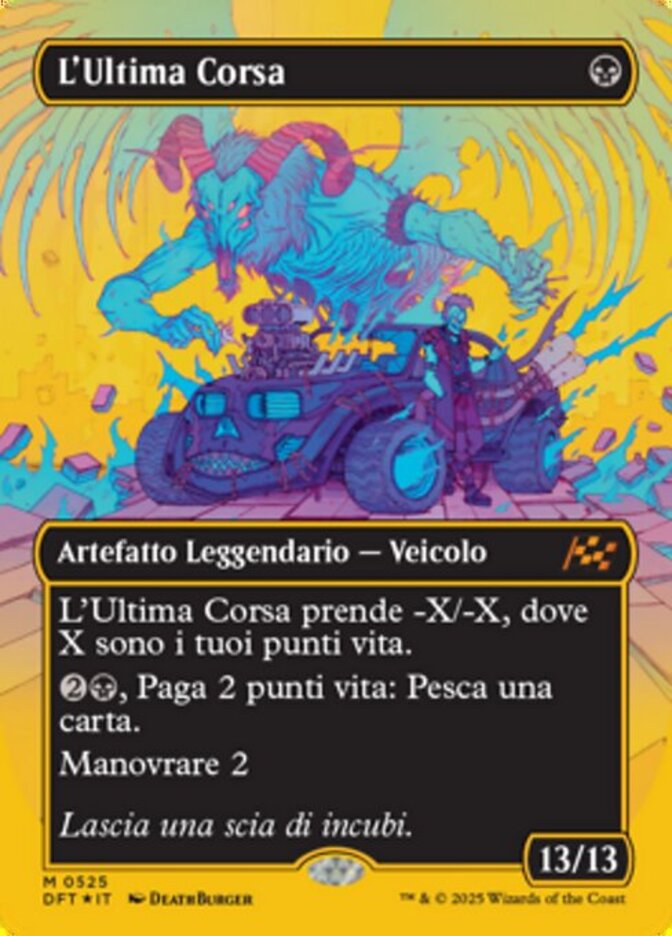 | Rules | The Last Ride gets -X/-X, where X is your life total. , Pay 2 life: Draw a card. Crew 2 |