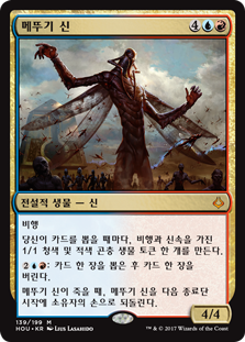 | Rules | Flying Whenever you draw a card, create a 1/1 blue and red Insect creature token with flying and haste. : Draw a card, then discard a card. When The Locust God dies, return it to its owner's hand at the beginning of the next end step. |