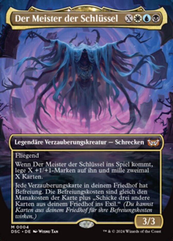 | Rules | Flying When The Master of Keys enters, put X +1/+1 counters on it and mill twice X cards. Each enchantment card in your graveyard has escape. The escape cost is equal to the card's mana cost plus exile three other cards from your graveyard. (You may cast cards from your graveyard for their escape cost.) |