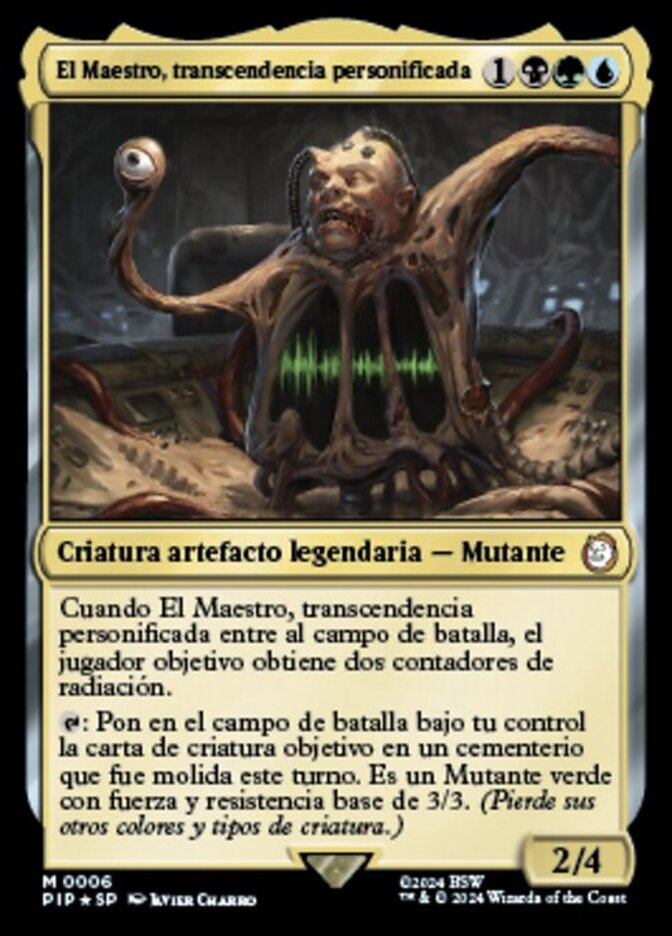 | Rules | When The Master, Transcendent enters the battlefield, target player gets two rad counters. : Put target creature card in a graveyard that was milled this turn onto the battlefield under your control. It's a green Mutant with base power and toughness 3/3. (It loses its other colors and creature types.) |