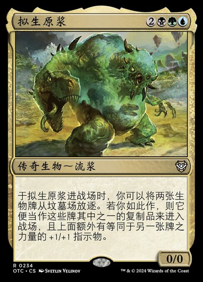 | Rules | As The Mimeoplasm enters the battlefield, you may exile two creature cards from graveyards. If you do, it enters the battlefield as a copy of one of those cards with a number of additional +1/+1 counters on it equal to the power of the other card. |