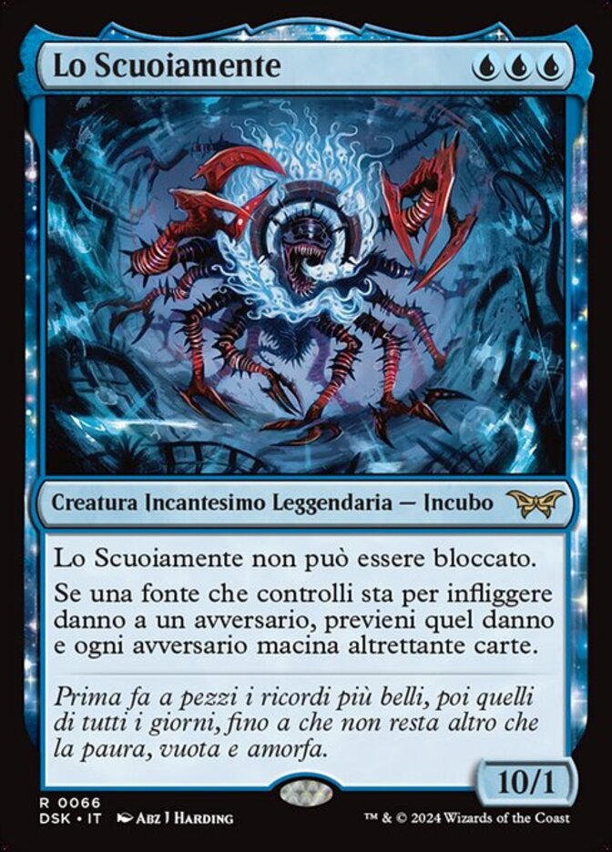 | Rules | The Mindskinner can't be blocked. If a source you control would deal damage to an opponent, prevent that damage and each opponent mills that many cards. |