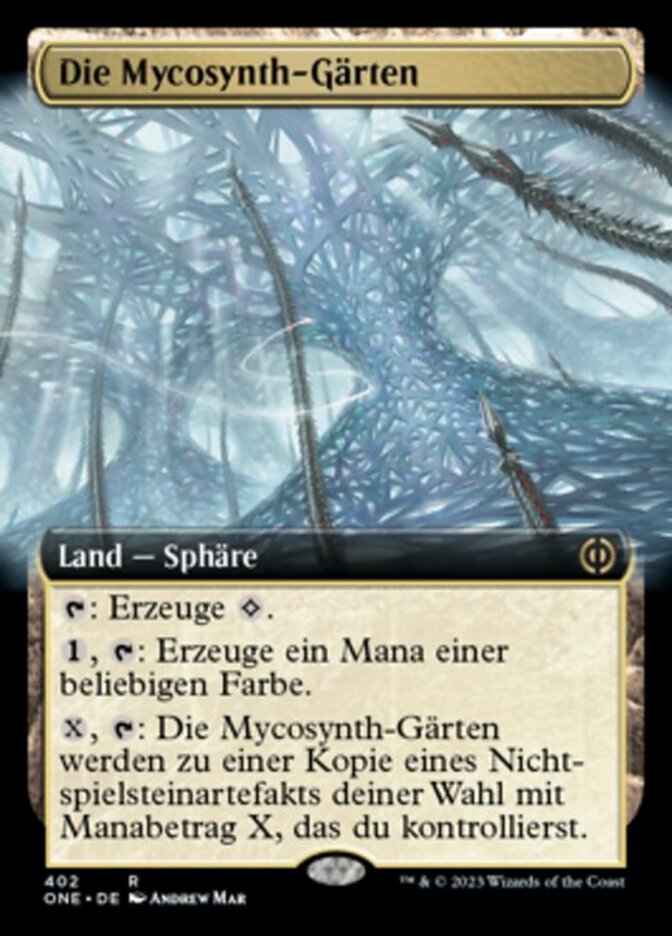 | Rules | : Add . , : Add one mana of any color. , : The Mycosynth Gardens becomes a copy of target nontoken artifact you control with mana value X. |