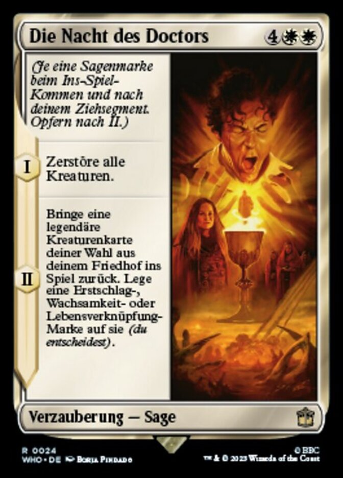 | Rules | (As this Saga enters and after your draw step, add a lore counter. Sacrifice after II.) I — Destroy all creatures. II — Return target legendary creature card from your graveyard to the battlefield. Put your choice of a first strike, vigilance, or lifelink counter on it. |