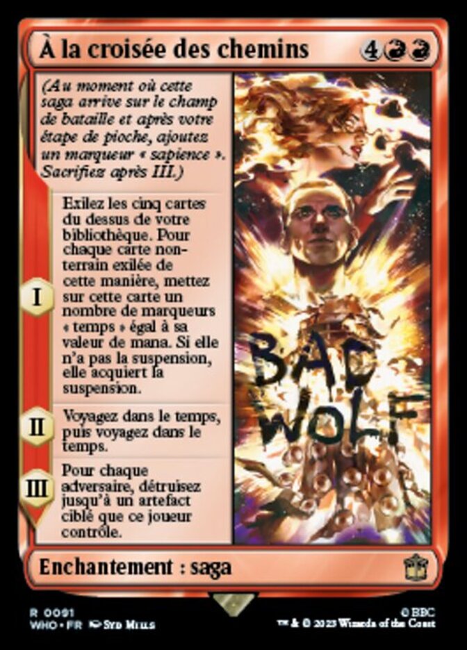 | Rules | (As this Saga enters and after your draw step, add a lore counter. Sacrifice after III.) I — Exile the top five cards of your library. For each nonland card exiled this way, put a number of time counters on that card equal to its mana value. If it doesn't have suspend, it gains suspend. II — Time travel, then time travel. III — For each opponent, destroy up to one target artifact that player controls. |