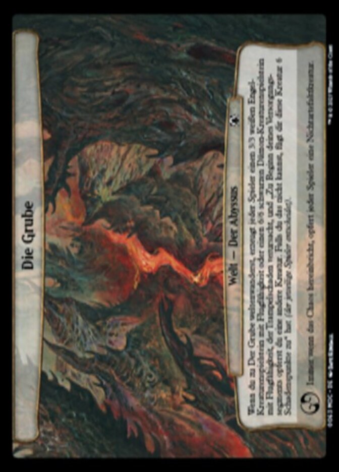 | Rules | When you planeswalk to The Pit, each player creates their choice of a 3/3 white Angel creature token with flying or a 6/6 black Demon creature token with flying, trample, and "At the beginning of your upkeep, sacrifice another creature. If you can't, this creature deals 6 damage to you." Whenever chaos ensues, each player sacrifices a nontoken creature. |