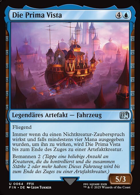 | Rules | Flying Whenever you cast a noncreature spell, if at least four mana was spent to cast it, The Prima Vista becomes an artifact creature until end of turn. Crew 2 (Tap any number of creatures you control with total power 2 or more: This Vehicle becomes an artifact creature until end of turn.) |