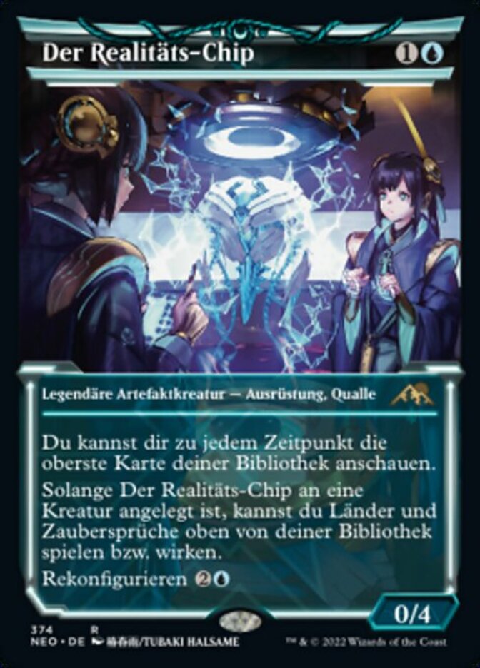 | Rules | You may look at the top card of your library any time. As long as The Reality Chip is attached to a creature, you may play lands and cast spells from the top of your library. Reconfigure (: Attach to target creature you control; or unattach from a creature. Reconfigure only as a sorcery. While attached, this isn't a creature.) |