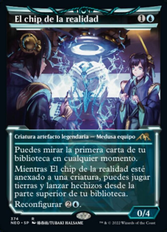 | Rules | You may look at the top card of your library any time. As long as The Reality Chip is attached to a creature, you may play lands and cast spells from the top of your library. Reconfigure (: Attach to target creature you control; or unattach from a creature. Reconfigure only as a sorcery. While attached, this isn't a creature.) |